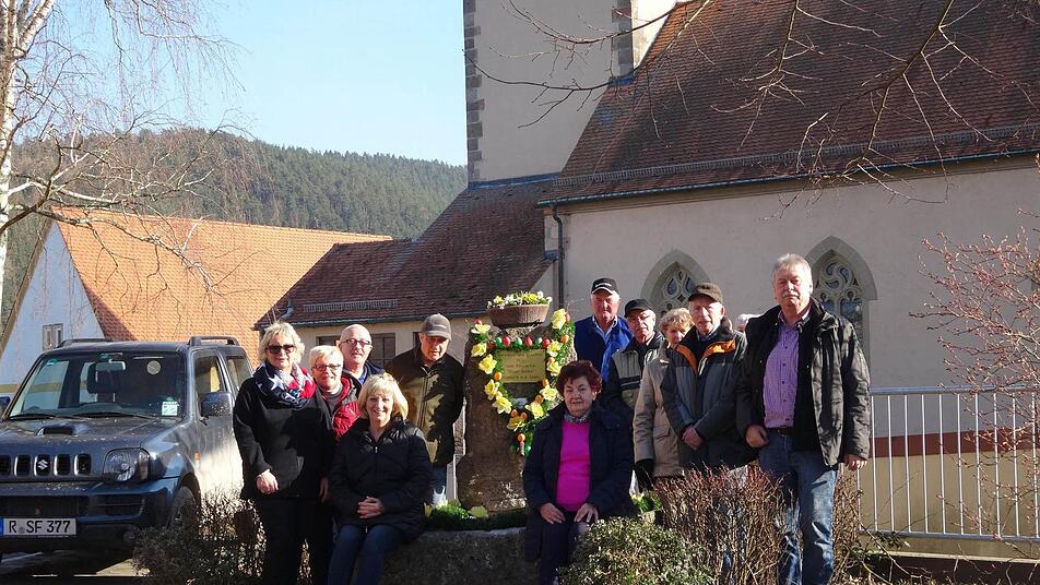 Es plätschert wieder, das Wasser am Oehrberger Brunnenplatz. Den Winter über war die Leitung abgestellt und das steinerne Bauwerk außer Betrieb. Die Mitglieder des Arbeiter- und Heimatvereins haben es wieder aus dem Winterschlaf geholt, das Wasser zum Laufen gebracht und die Fläche ringsum österlich geschmückt. Doch die sieht heuer ganz anders aus als in den Jahren zuvor.