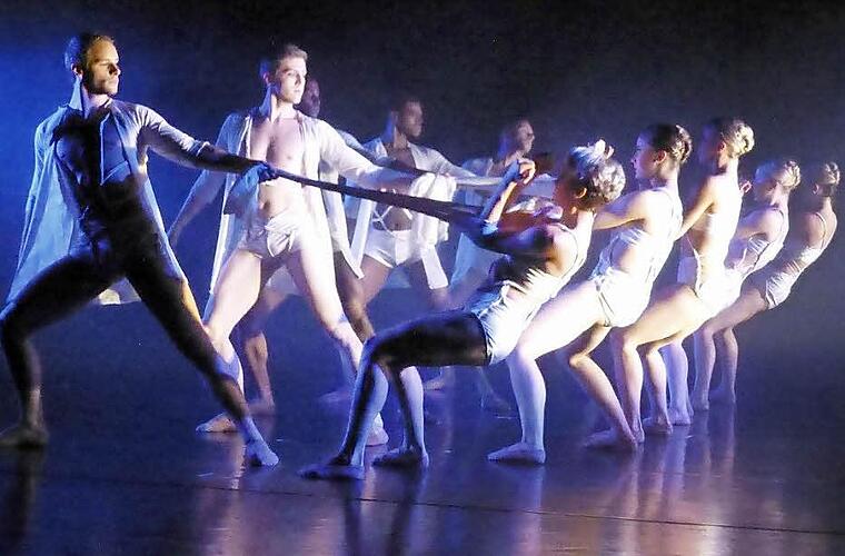 Klassische Elemente River North Dance Chicago kam mit einer perfekten, nicht zuletzt durch Joshua Paul Weckessers großartiges Lichtdesign äußerst beeindruckenden Bühnenshow ins Kurtheater. Frank Chaves setzt im Gegensatz zu mancher Truppe in den vergangenen Jahren, nicht so sehr auf das Spektakuläre, die an Tanzsport erinnernden Riesensprünge, Hebefiguren und verblüffenden Körperbewegungen; er setzt auf den Tanz, auch den klassischen Tanz, so dass man an diesem Abend immer wieder ganz klassische Schritte und Formationen erkennen konnte, die er aber kreativ und abwechslungsreich zu neuen Ausdrucksmöglichkeiten nutzt.