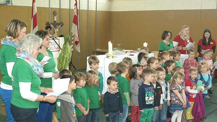 Musik und Spiel Zum Auftakt des Jubiläums fand ein Familiengottesdienst statt, bei dem 300 Besucher die Turnhalle bis auf den letzten Platz füllten. Im Spiel "Konferenz der Steine" verdeutlichten Erzieherinnen und Kindergartenkinder, dass jeder Stein der wichtigste sein möchte, aber erkennen muss, sie nur zusammen zu einem großen Haus werden können. Vergleichbar hätten viele beigetragen, dass der Kindergarten allen so viel Spaß mache. Das Dankamt gestaltete die Fago-Band Shalom unter Johannes Kessler aus.