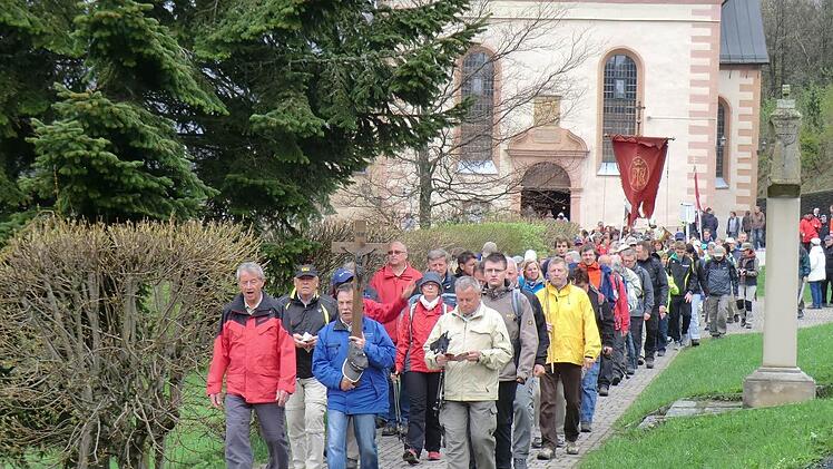 Acht Stunden zum heiligen Berg Über Schlimpfhof, wo sich ebenfalls noch zahlreiche Pilger dem Zug anschlossen, ging es nach Burkardroth.