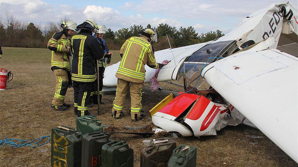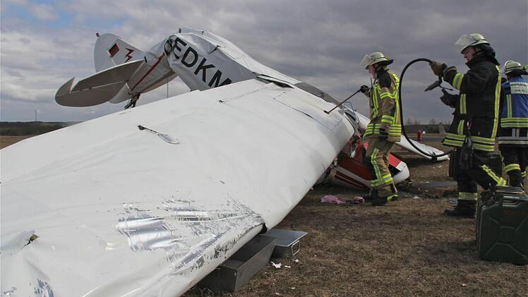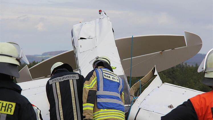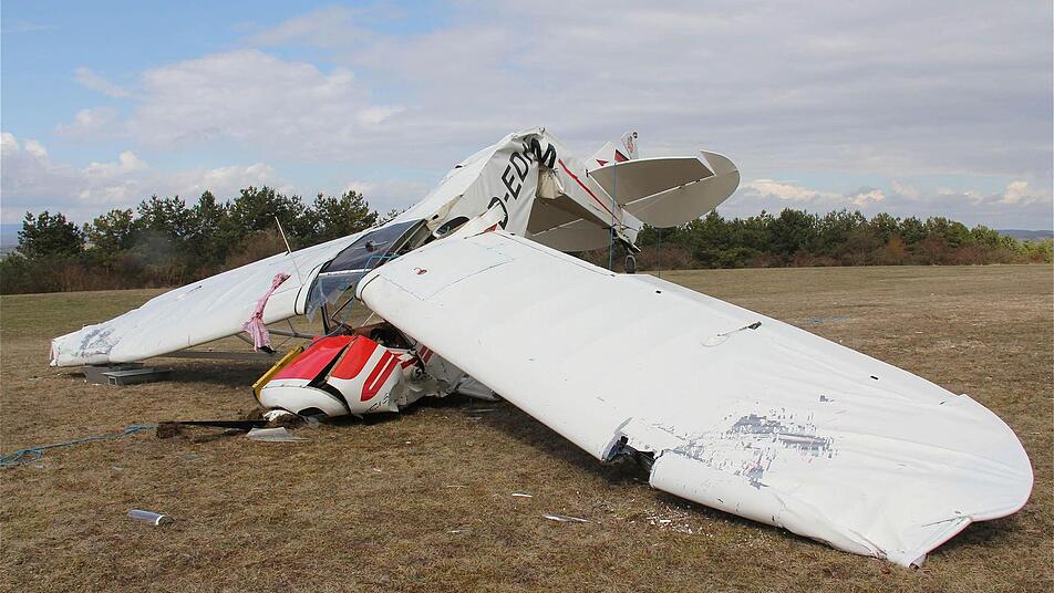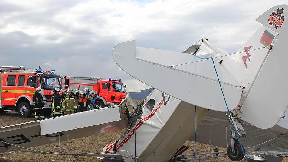 Seine "Piper" war nach dem Anschleppen eines Segelflugzeugs aus etwa 20 Metern auf den Boden geprallt. Die Unfallermittlungen vor Ort führt ein luftfahrtkundiger Beamter der Kripo Schweinfurt.