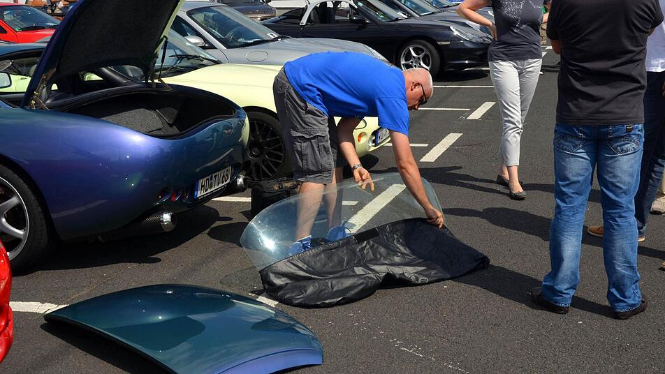 - Tuscan an. Das Fahrzeug in Camäleon-blau hat 385 PS und kostete gerade einmal 20 000 Euro. "Weniger als ein Golf" verrät der Heidelberger und gibt dann allerdings zu bedenken, dass er inzwischen weit über 10 000 Arbeitsstunden in sein Hobby investiert hat. Extrem teuer, über 1000 Euro, war ein Liter der schillernden Spezialfarbe, in der sich sein "Schätzchen" nun präsentiert.