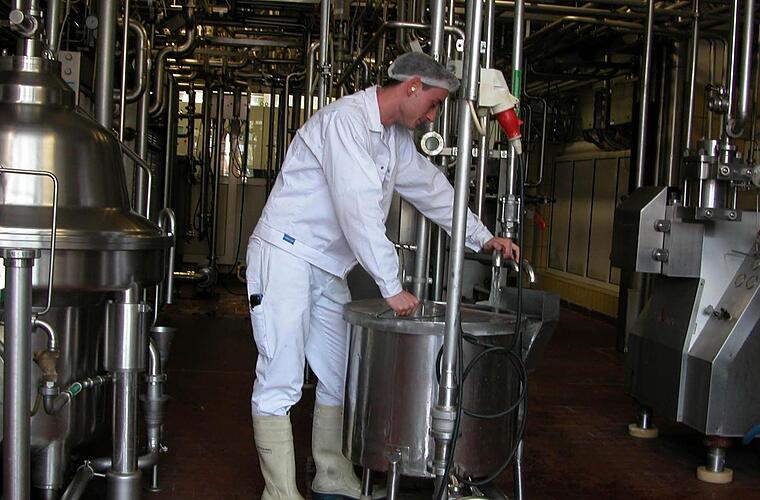 Was wird aus den Mitarbeitern? Und wie sieht die Situation heute aus? "Die Anlagen für die 40- bis 75-Gramm-Packungen sind abgebaut und nach Zapfendorf verlagert", sagt Betriebsratsvorsitzender Steffen Reitelbach. "Auch die 5- bis 10-kg-Eimer werden dort produziert. Die Maschinen stehen allerdings noch hier. Den Rest produzieren wir noch: Magerstufe, 20 und 40 Prozent, Frucht- und Kräuterquark in 150- bis 500-g-Packungen." Und das teilweise sogar in drei Schichten. Zumal in letzter Zeit noch ein Kräuterquark-Großauftrag von Lidl eingegangen ist.