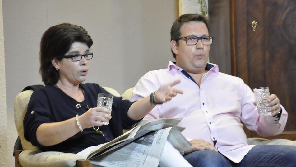 Beide haben das Stück in die Gegenwart und nach Katzenbach verlegt. Aus den Hauptfiguren Jane und Andrew wurden Hubert und Wilma. Die Herausforderung, so sagten sie, seien die zwei Bühnenbilder gewesen, die teilweise gleichzeitig bespielt wurden. Eines war das Wohnzimmer von Hubert und Wilma, das andere deren Gartenterrasse. Die Problemlösung war eine geteilte Bühne. So hatte der Zuschauer das Geschehen fest im Blick und konnte sich auf die spritzigen Dialoge konzentrieren und dem Geschehen freien Lauf lassen.