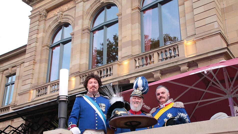 Neben den offiziellen "Historischen" sind auch Gäste beliebte Foto-Motive: Hier lassen sich Jürgen Wulf und Ortrud Beerhorst mit Peter Krug, dem Darsteller von Prinzregent Luitpold, ablichten. Foto: Ralf Ruppert