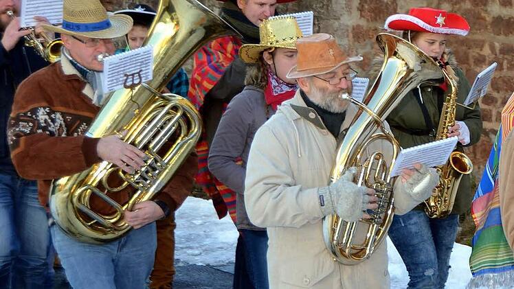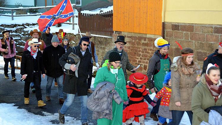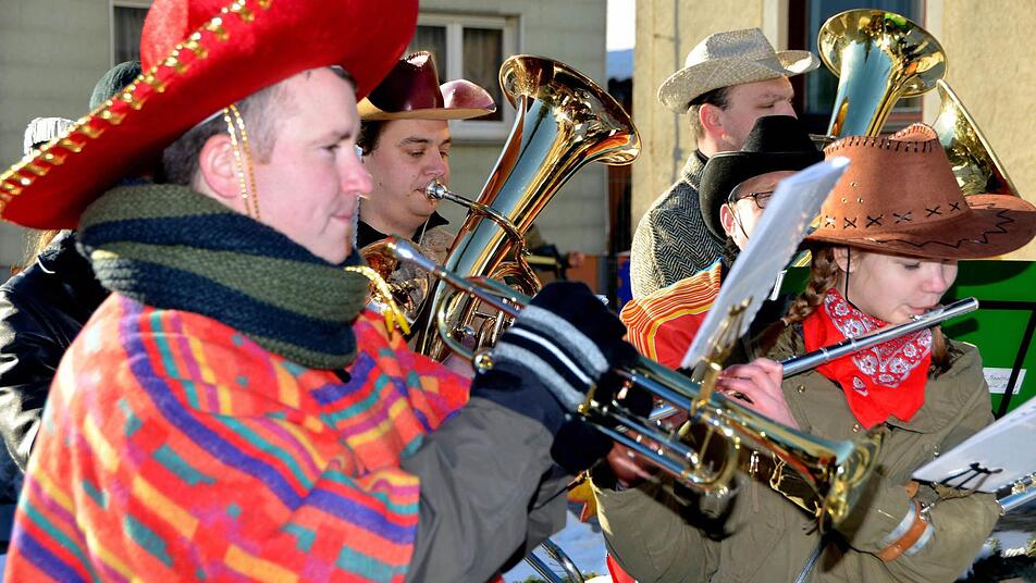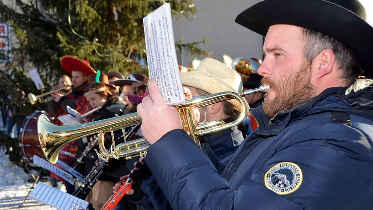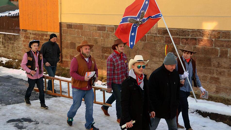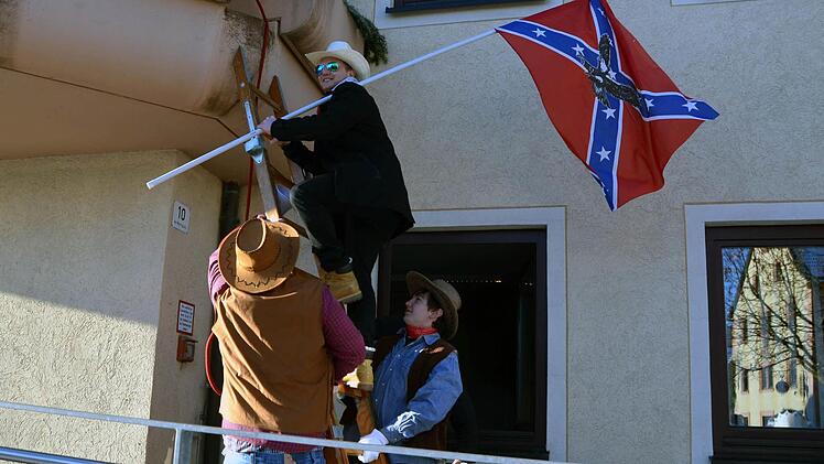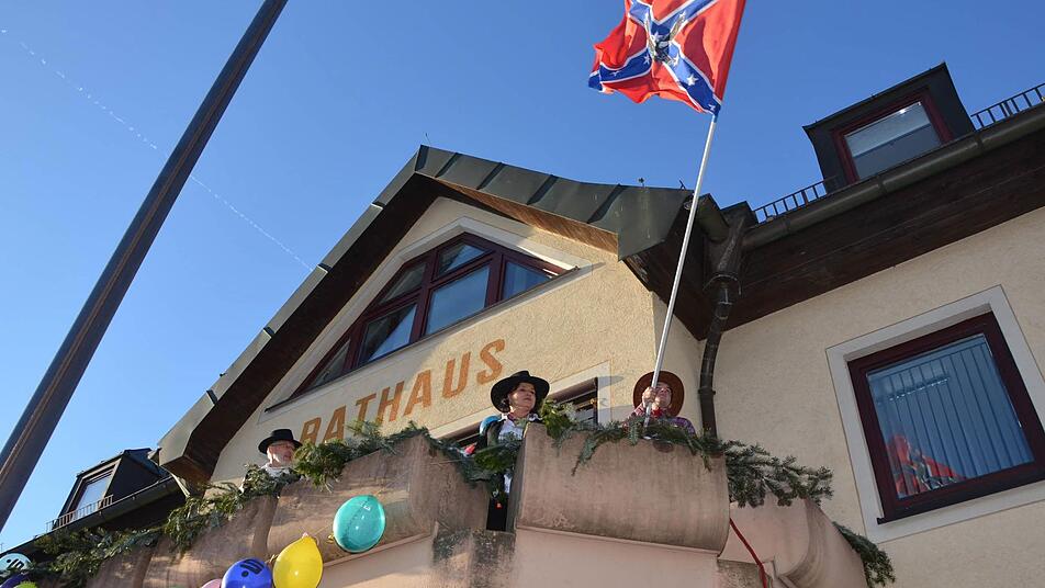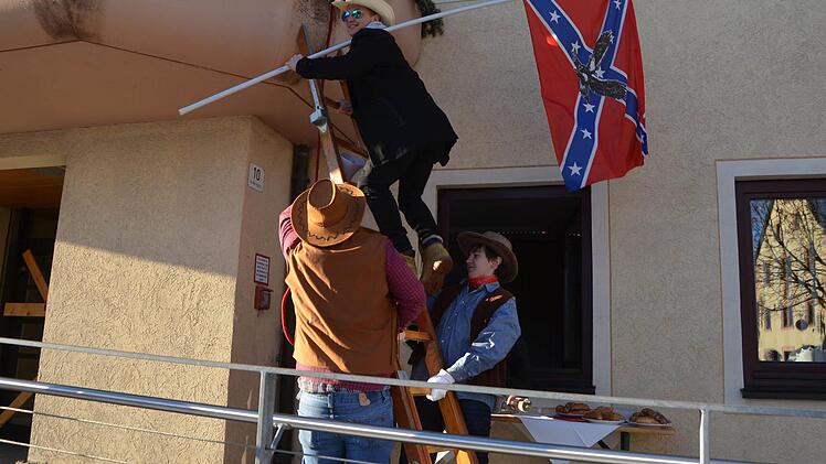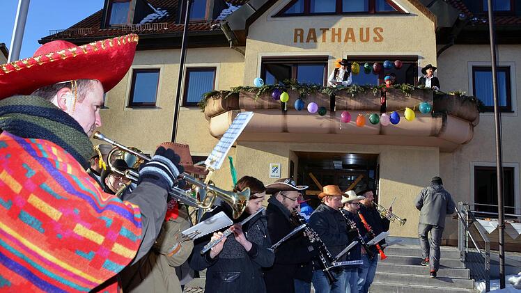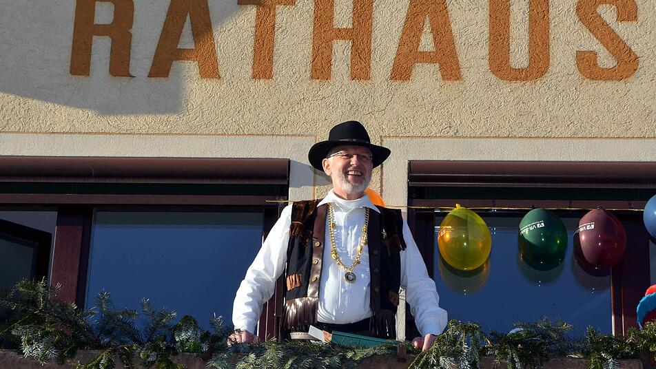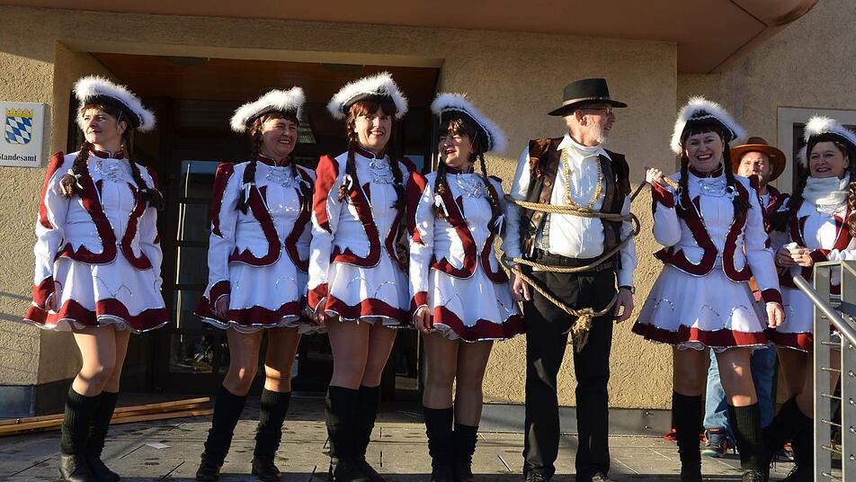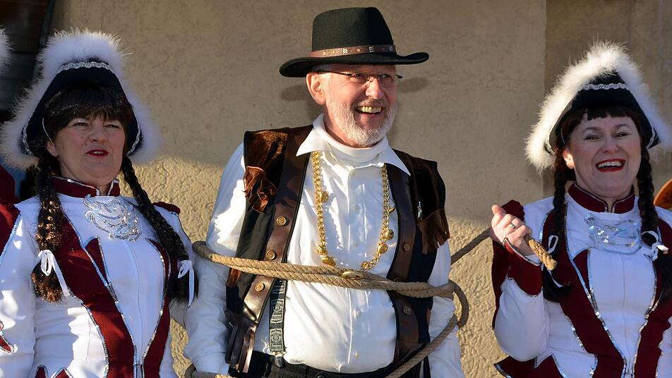 Helau aus dem Wilden Westen: Die Narren aus Lauter und Katzenbach haben das Rathaus in Burkardroth eingenommen.