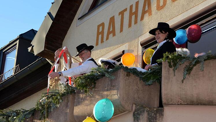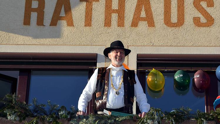 Bürgermeister Waldemar Bug (ÖDP) gibt auf und ist zurückgetreten - zumindest bis zum Aschermittwoch übernehmen die Narren aus Lauter und Katzenbach, allen voran das Prinzenpaar Alex und Carmen, die Regentschaft im Burkardröther Rathaus. Am Samstagnachmittag war zwar noch nicht der "Große Trail", der ist erst für den Faschingssonntag von Katzenbach zum Lauterer Feuerwehrhaus geplant, aber übern Berg sind die Narren inzwischen schon mal bis zum Burkardröther Rathaus gekommen.