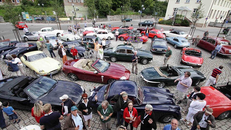 68 Fahrzeuge der Jaguar Association Germany fuhren am Wochenende durch Bad Brückenau. Nur ein Exemplar fehlte in der Runde: Der Jaguar von Prinzessin Diana wurde aus organisatorischen Gründen doch nicht gezeigt.
