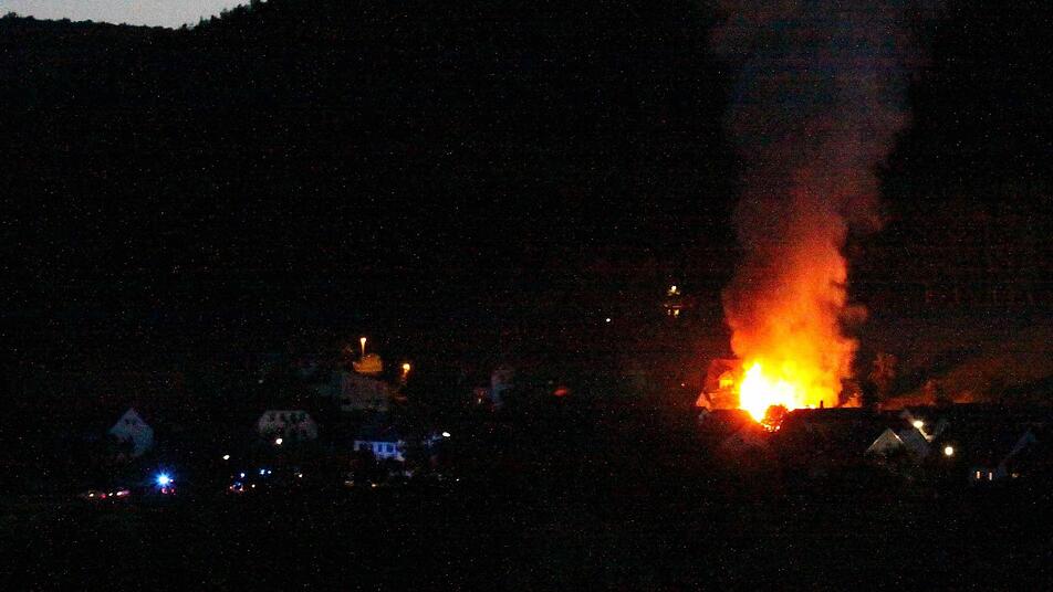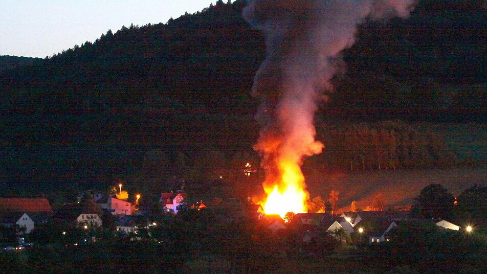 Am späten Samstagabend ist im Zeitlofser Ortsteil Eckarts (Kreis Bad Kissingen) eine Scheune, die zu einem Reifenservicebetrieb ausgebaut worden war, fast vollständig abgebrannt. Bei den Löscharbeiten brach ein Feuerwehrmann zusammen und musste reanimiert werden, zudem wurde sein Sohn verletzt.
