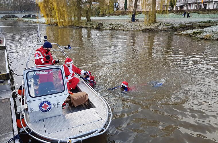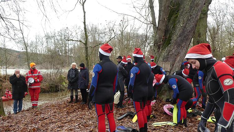 42 mutige Schwimmer wagten sich am ersten Adventssonntag in die Saale.