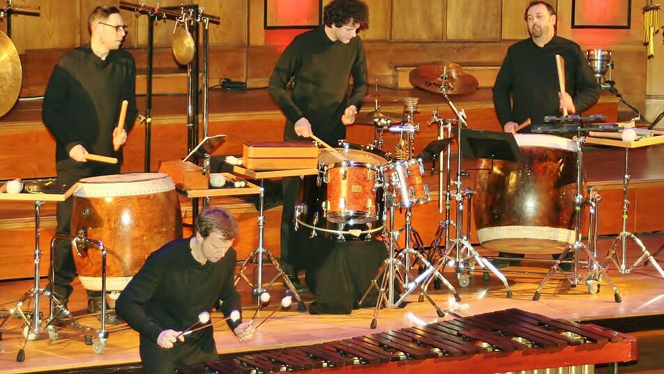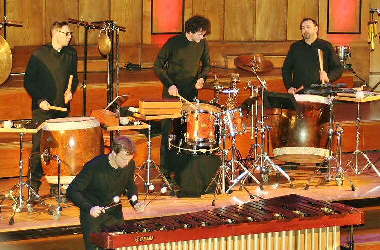 Die Perfektion, mit der die vier Musiker ihre Instrumente beherrschen, nimmt das Publikum schon beim ersten Stück gefangen, ist aber nur der Anfang einer atemberaubenden Schlagwerkperformance, die in unterschiedlichstem Ausdruck einer getrommelten Weltreise gleicht, wie Behrend, Marimba-Solist, Komponist und