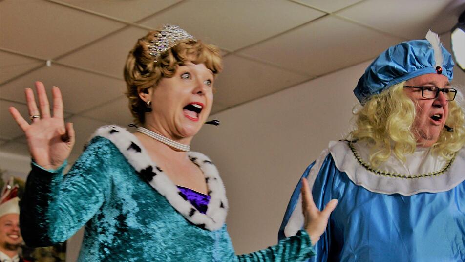 Es geht also - flott moderiert vom Vorsitzenden Mathias Bühner und Alexander Pusch - Schlag auf Schlag bei der Proklamation. Die Tanzgruppen liefern einen ersten Nachweis ihres Könnens. Aber dann folgt eine Premiere, die den Reiterswiesenern die Zornesröte auf ins Gesicht treibt. Da wagt doch tatsächlich ein Poppenröther, sich als Faschingsprinz für die Linsenspitzer zu bewerben. Hermann, alias Stadtrat Klaus Bollwein, mehr oder weniger gedrängt von Gattin Mathilde (Birgit Schreiber) will als Prinz Herrmann I. für Reiterswiesen antreten, um Mathilde's Traum als Prinzessin endlich zu erfüllen. Wunderbar stimmige Persiflage auf den Rummel rund um das höchste Amt im Fasching.