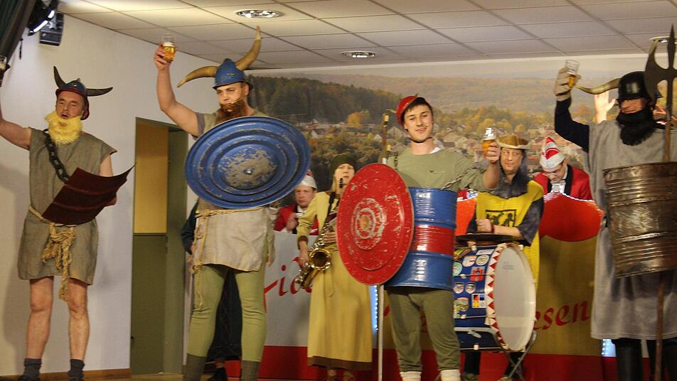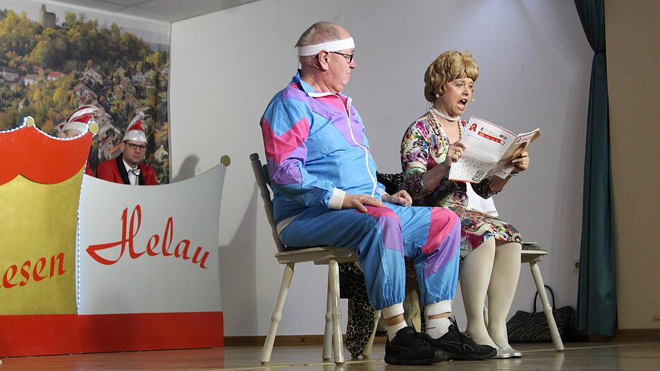 Zu großer Form liefen die trinkfesten Ritter von Burg Botenlauben auf, denn das war kein lieblicher Met, das war Hochprozentiges, was sie dem OB Kandidaten Gerhard Schneider und den Stadträten einschenkten. Drohende Schwerter wurden gereckt, um zu unterstreichen, die Krone schon 2021 als Bürgerhaus umzubauen und die Burgstraße endlich zu beginnen. Spott von den Rittern und Pfiffe und Buuh"s vom Publikum für die Räte, dass der idyllische Spielplatz in Reiterswiesens lebendigstem Stadtteil "Stempes" aufgelassen werden soll. Bittere Tropfen auch zum Eissporthalleninvestor und den Plastikblumen am "Weltkulturerbe" Rathaus und der ritterliche Hinweis, dass Reiterswiesen das schönste Rathaus hat und der Stadtteil sowieso der Beste ist. Das kam so überzeugend, dass selbst der Garitzer BTC - in voller Mannstärke angetreten - sich nicht zu protestieren traute. Tanzmariechen Christina Kiesel und die Prinzengarde bringen den Blutdruck in die Höhe, bevor der "Hausmeister" einen wahren Parforceritt durch die Klatschpalten der Regenbogenpresse unternimmt und Peter Halbig als Hambacher Till die Großen der Welt gereimt aufs Korn nimmt. Vom beleidigten Gauland über die "Heilige Greta" bis hin zum "Volldepp mit der Entenarschfrisur", Fazit Deutschland ist Spitze und Europa unsere Hoffnung. Dann machten sich die Blauen Husaren auf farbenfrohe Shoppingtour, bis Birgit Schreiber und Klaus Bollwein, als herrlich ungleiches Paar H&M von nebenan im Wartezimmer Krieg führten. Sie: "Weißt Du Hermann, was mir nicht passt"? Er: "Größe 36". Sinnlich farbenfroher Abschluss, die geheimnisvolle Unterwasserwelt, in der die Prinzengarde, in Meerestiefe das versunkene Atlantis suchte.
