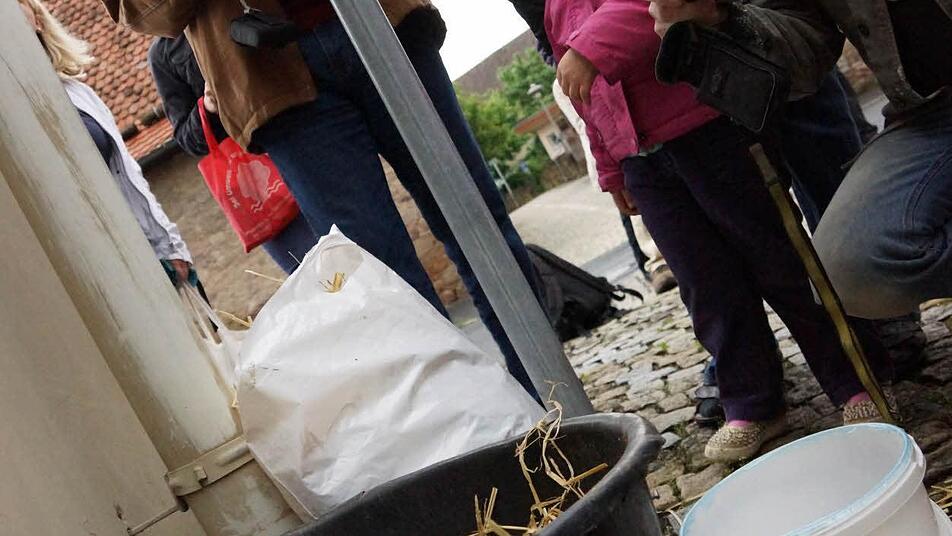 Sie zücken ihre Kameras, als Fenn am Boden die Tiere aus der Tüte in einen Bottich umbettet. Einer der Jungstörche verschlingt ein Hühnerküken. Aus der Nachbarschaft bringt jemand eine Wärmflasche. Sie wird zu den drei Küken unter das Stroh gelegt.