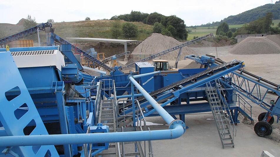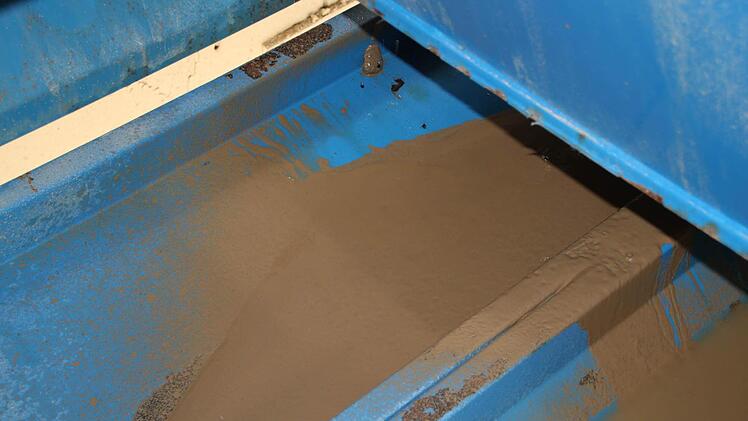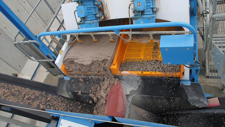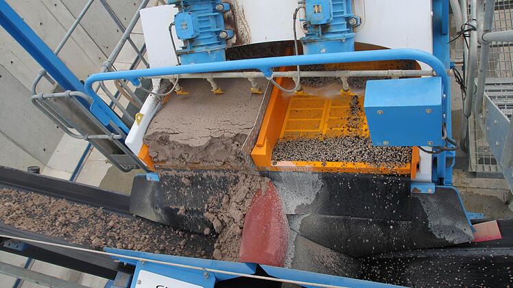 Wasserkreislauf ist geschlossen Von außen freilich sieht die "Waschhexe" wenig beeindruckend aus. Die Waschanlage für Gestein rumpelt und zittert. Auf einem Förderband zieht sie das dreckige Material in ihr Inneres. Dort wird es gewaschen, geschleudert, getrennt. Auf der einen Seite kommt Sand heraus, auf der anderen feine Kieselsteine. Und dann ist da noch diese lehmartige Masse, die Enders "Filterkuchen" nennt. Dort landen alle Stoffe, die nicht im Stein sein sollen. Und auch nicht im Was ser. Und schon gar nicht in der Kanalisation.