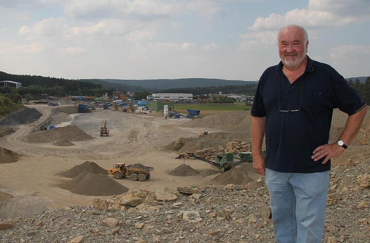 Der gebürtige Oberleichtersbacher wuchs als Kind in Düsseldorf auf. Später kehrte er in die Heimat zurück. Damals, in den 1980ern, holten sich die Bauern das Gestein noch aus kleinen Gruben. "Da habe ich die fünf Löcher zusammen gekauft und einen Plan gemacht", erzählt der 63-Jährige. "Mein Plan ist genehmigt worden und seither wird in Oberleichtersbach Dolomit und Kalk ab gebaut."