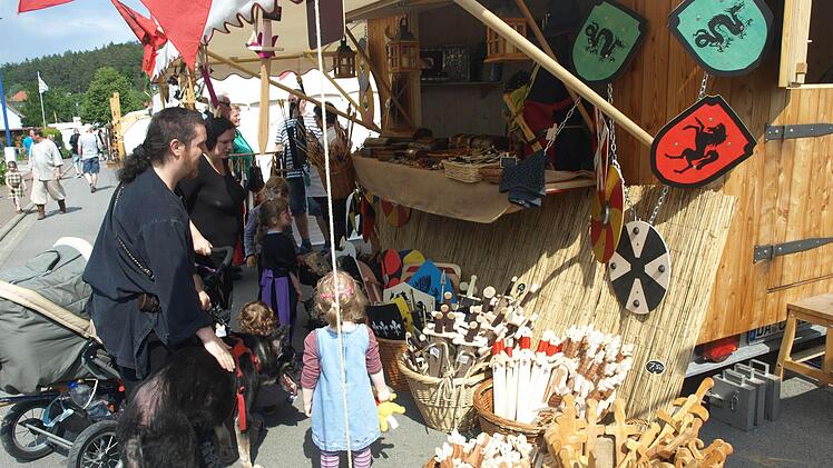 kennzeichnen viele Zelte. Hier bieten Händler ihre Waren feil. In anderen Zelten sitzen Ritter und Handwerker mit ihrem Gefolge beisammen. Alle sind bereits am Freitag angereist. Sie alle zollen den Festverantwortlichen großes Lob: "Wir sind herzlich aufgenommen worden. Alle Wünsche wurden erfüllt, wir fühlen uns richtig wohl hier in Rottershausen."