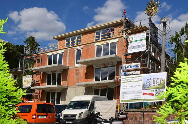 Nach gut einjähriger Bauzeit wurde in der Salinenstraße 22a Richtfest gefeiert. Die IVG Gesellschaft für modernen Wohnungsbau aus Oberleichtersbach mit ihren beiden Gesellschaftern Alexander Echtner und Günther Kühnlein hat hier eine moderne Wohnanlage für insgesamt 13 Familien errichtet. Die beiden hintereinander liegenden, jeweils vierstöckigen Wohnhäuser nutzen eine gemeinsame Tiefgarage und sind auf der ersten Ebene miteinander verbunden.