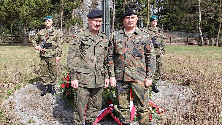 Mit einer feierlichen Kranzniederlegung gedachten der polnische Generalmajor Boguslaw Samol und der deutsche Generalmajor Carsten Jacobson der Verstorbenen auf dem Polenfriedhof. Samol ist der Kommandeur des Multinationalen Korps Nordost aus Stettin und leitet zurzeit die internationale Stabsübung "Crystal Eagle 2013" mit über 1500 Soldaten aus 21 Nationen. Jacobson ist der Chef der 1.