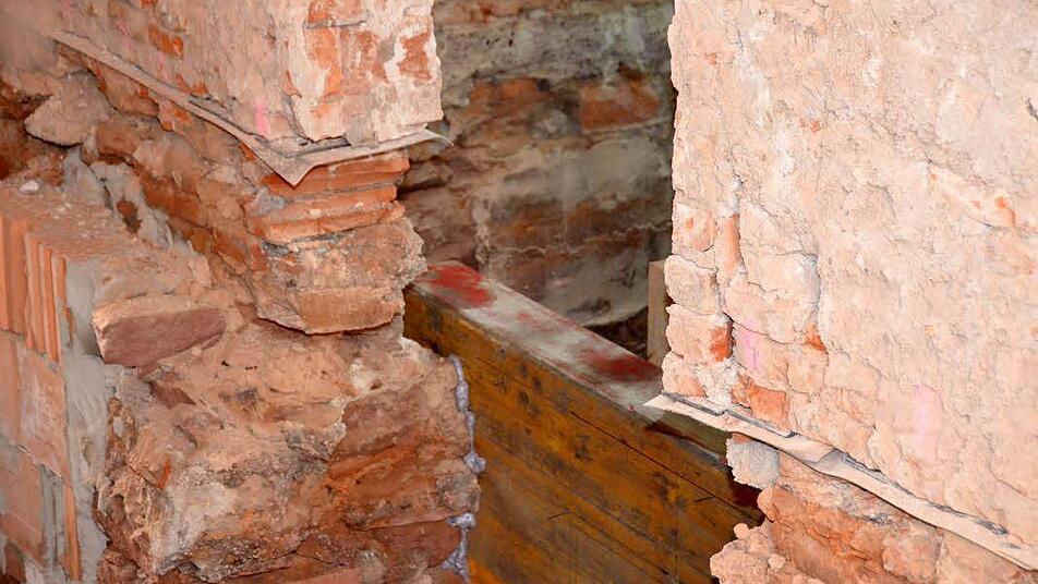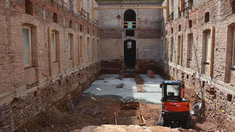Denn damals brachte man Bitumenbahnen zwischen das Mauerwerk ein, das mit Eisenkeilen anstemmt wurde. Und eben diese Eisenkeile waren inzwischen so stark verrostet, dass sie Teile der Außenmauern um bis zu einem Zentimeter angehoben haben. Inzwischen halten Edelstahlplatten aufsteigende Nässe ab, die alten Keller sind größtenteils verfüllt, so dass nach Aussage der Architekten das zukünftige Behördenzentrum nicht nur einem hundertjährigen, sondern sogar
