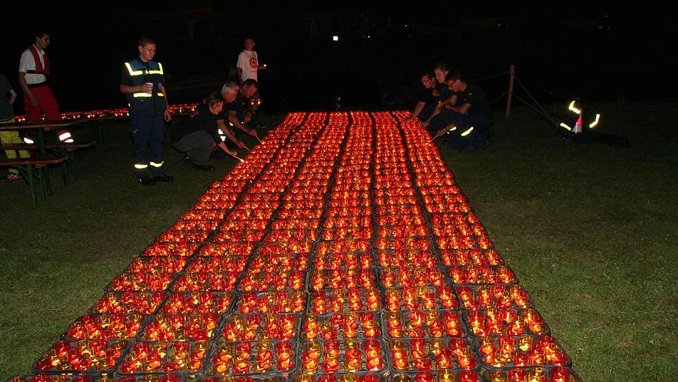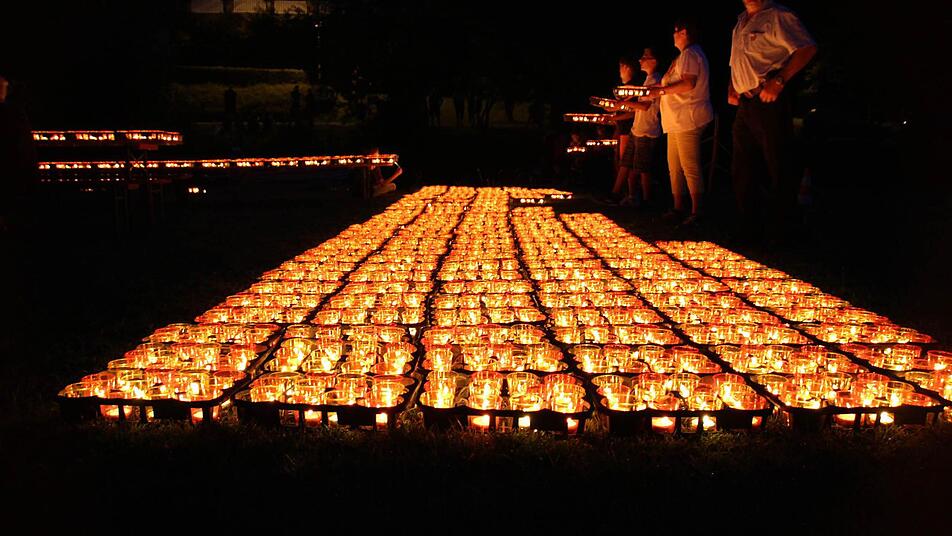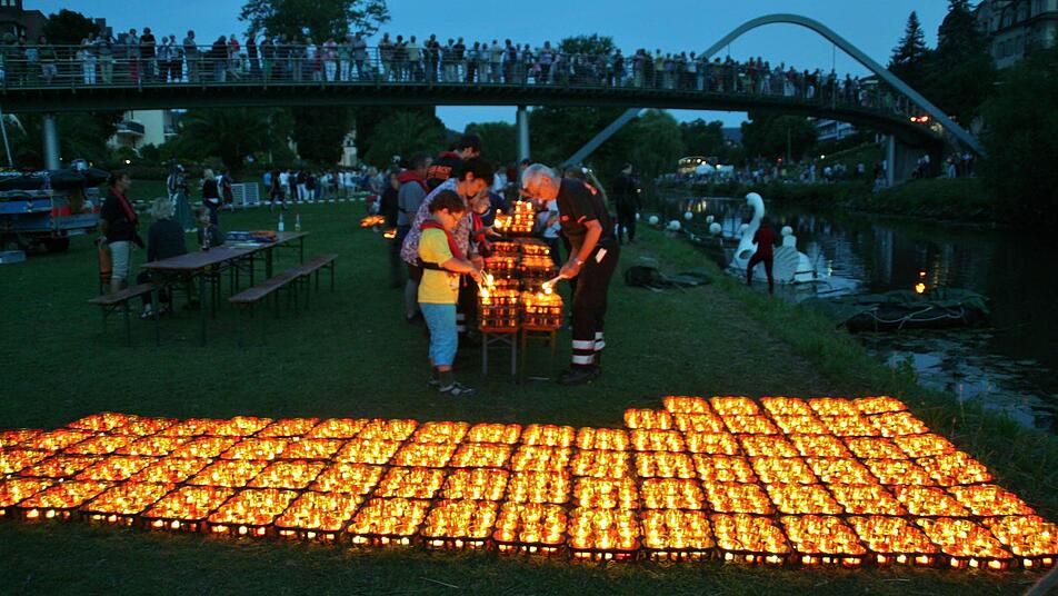 Inzwischen hat Alexander Knaab, der technische Leiter der Wasserwacht, seinen fast zwei Dutzend Helfern letzte Anweisungen gegeben. Alle helfen mit, die Kistchen mit den Lichtern auf bereitstehende Biertische zu stellen. Lange dünne Kerzen werden verteilt, alles ist vorbereitet. Langsam wird es dunkel.