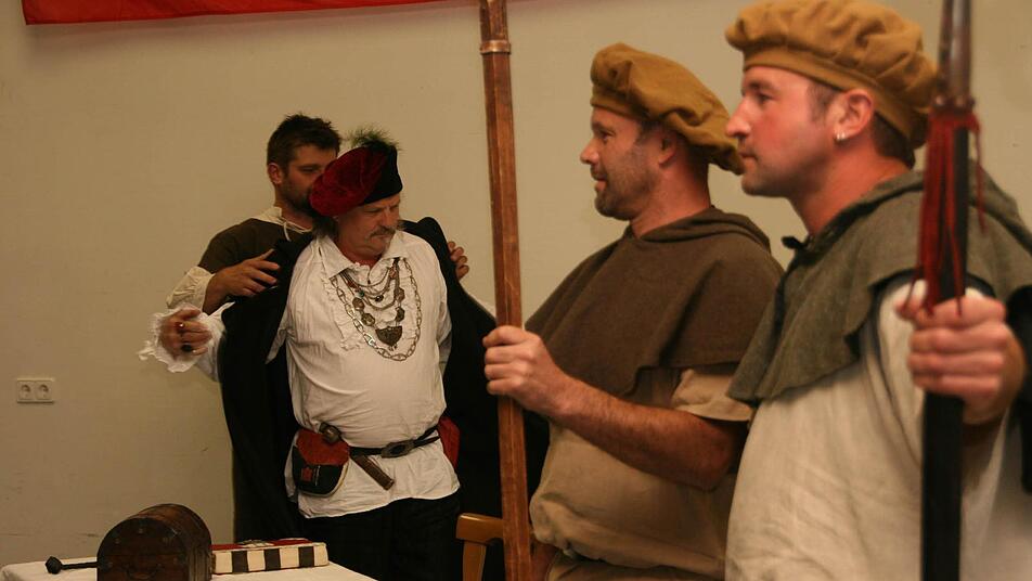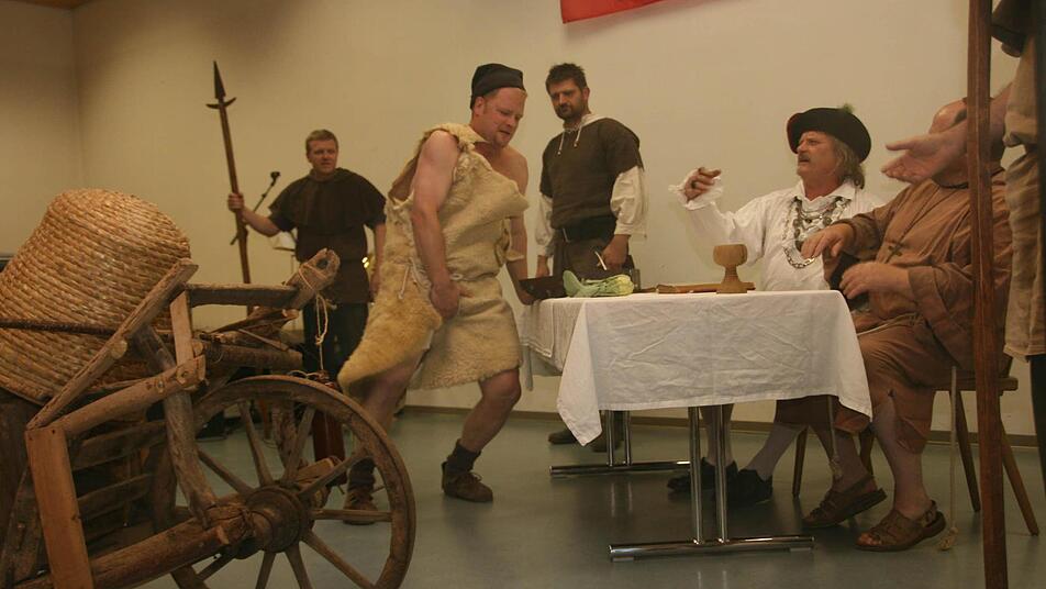 Für die Zuschauer war der Auftritt des Thulbaer Bauernhaufens zugleich eine der wenigen Vorstellungen in der Gemeinde selbst. Denn die Akteure sind häufig auswärts eingeladen. "Wir sind viel im Coburger Raum unterwegs. Der bisher am weitesten entfernte Auftritt war bei Ulm", sagte Jürgen Kolb. Für die Veranstaltung der Saale-Zeitung hatten die Laienschauspieler aber extra eine Szene über die Zehntabgabe einstudiert.
