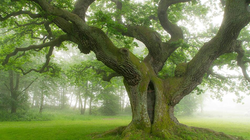 Manche Bäume üben eine große Faszination auf Menschen aus. Um sie ranken sich Sagen und Legenden, sie dienen als Treff- und Orientierungspunkt und werden sogar zur Glaubensstätte, etwa indem religiöse Menschen Marienbilder an den Stämmen befestigen. "Bäume stehen oft in Verbindung zu Aberglauben, Religion und Kult", sagt Förster Maik Despang. Prädestiniert dafür sind Baumriesen wie die Bildeiche in Albertshausen und die Tausendjährige Eiche bei Reith.
