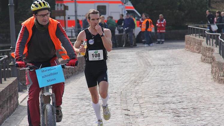 Jürgen Zeißner von der Schweinfurter TG 48 holte sich in drei Stunden, acht Minuten und 55 Sekunden den Sieg über die 42 Kilometer lange Marathonstrecke bei den Herren und liegt damit auch auf Platz eins bei der Unterfränkischen Meisterschaft. Die vereinslose Teilnehmerin Kati Lehmann siegte bei den Marathon-Frauen.