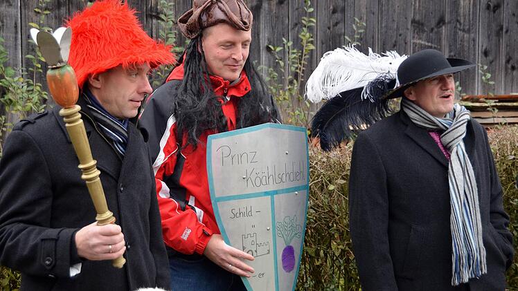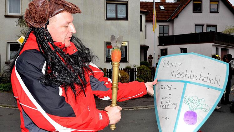 Einfacher hat es ihr Mann Matthias: Sein Name ist auf dem Schild, dem Signum seiner Macht, verewigt: "Prinz Köählschdiel" (Kohlstiel), so heißen alle Faschingsprinzen aus Lauter und Katzenbach. Die Faschingsprinzessin bekam heuer auch erstmals ein Zepter, an dessen Spitze ein Kohlkopf samt Blättern prangt.