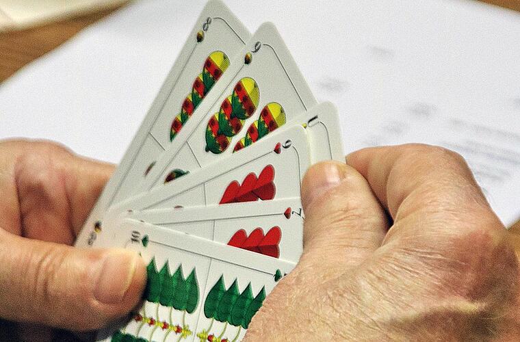 Schafkopf ist (noch) nicht als Weltkulturerbe anerkannt, aber im Internet-Lexikon Wikipedia wird es immerhin als "Kulturgut und Teil der altbayrischen und der fränkischen Lebensart" geadelt. Dieses Kartenspiel wird daheim ebenso wie in Stammtisch-Runden in Kneipen oder Vereinshäusern noch immer viel gespielt. Jeden Winter finden landauf und landab Turniere statt, deren Teilnehmerzahl nicht selten die 100 überschreitet. In den Räumen der königlich-privilegierten Schützengesellschaft Münnerstadt 1356 kämpften, wie immer am Samstag vor dem Feiertag Heilig Drei Könige, Schafkopfspielerinnen und -spieler um Sieg und Platz. Unter den Turnier-Teilnehmern waren wie immer nur sehr wenige Damen.