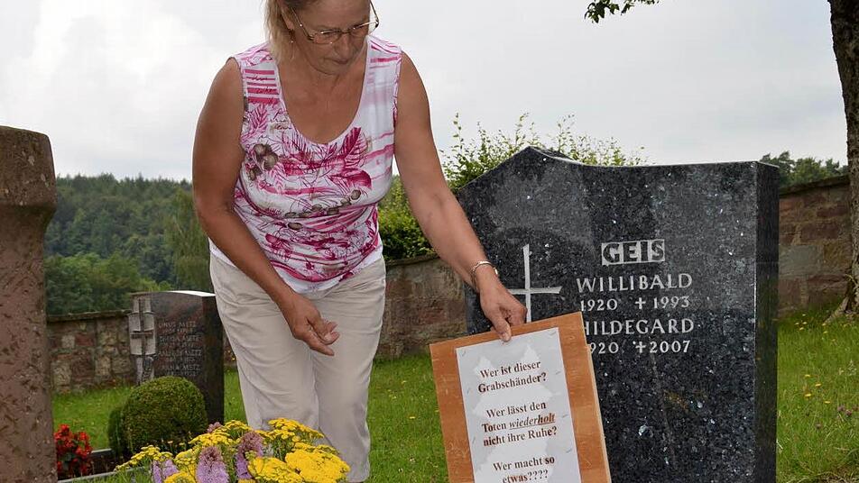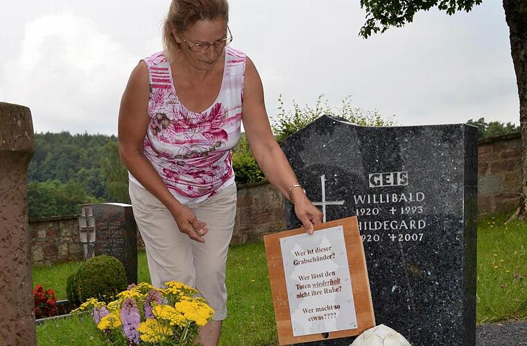 Auch Lydia Muth hat schon daran gedacht. "Vielleicht habe ich mal jemanden mit einer Äußerung verletzt", sagt sie. Umso weniger kann sie verstehen, dass deshalb das Grab ihrer Eltern verunstaltet wird. Seit Kurzem hat sie sogar ein Schild an der Ruhestätte stehen. "Wer ist dieser Grabschänder? Wer lässt den Toten wiederholt nicht ihre Ruhe? Wer macht so etwas?", ist darauf zu lesen. Doch gemeldet hat sich noch niemand. "Wer ein Problem mit mir hat, der soll mich ansprechen. Es findet sich immer eine Lösung", sagt sie.