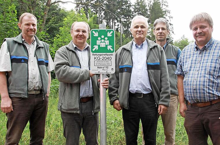 Bad Kissingen — Zwei Buchstaben und vier Zahlen können Menschen in Zukunft das Leben retten. "KG-2040": Dank dieser Kombination erfahren Einsatzkräfte künftig ganz genau, dass sie so schnell wie möglich am Parkplatz "Dreikantstein" im Klauswald gebraucht werden. Dort steht neuerdings ein Schild, auf dem das Symbol für eine Sammelstelle und der Buchstaben-Zahlen-Code abgebildet sind.