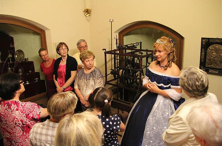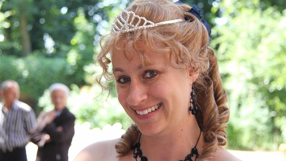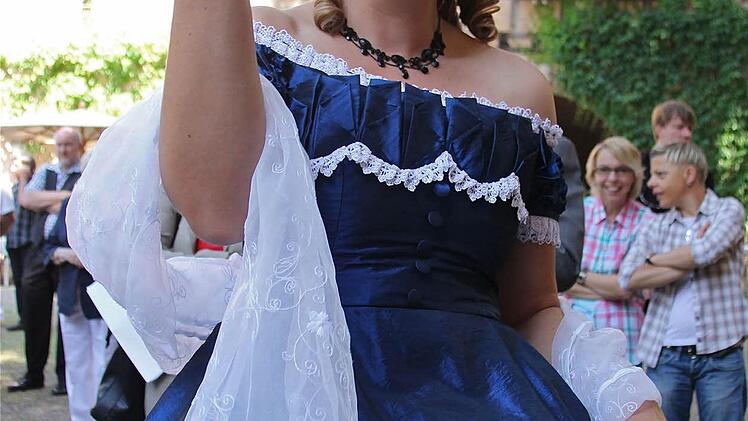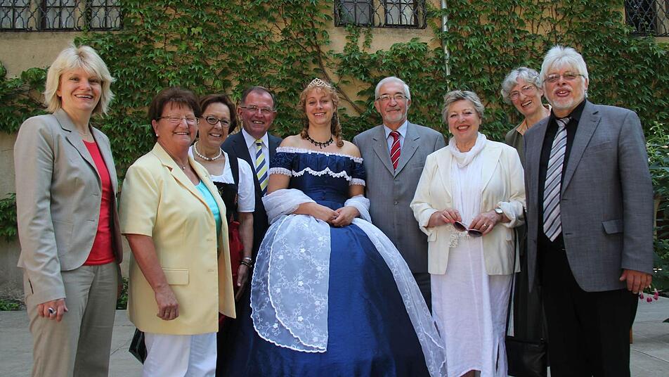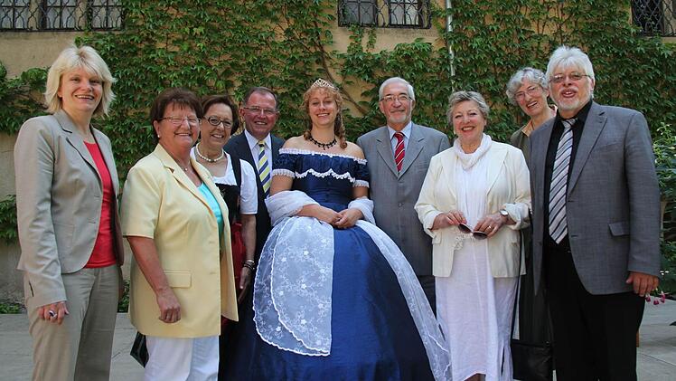 Die frühe Mittagssonne brannte zunehmend auf die Stuhlreihen der geladenen Gäste im Schlosshof. Das Saxophontrio von Birgit Schniske aus Bad Königshofen sorgte für den musikalischen Rahmen. Im Stil der alten Zeit war Museumspädagogin Beatrice Rose-Ebel gekleidet, die als Louise Gräfin von Luxburg, geborene Prinzessin von Schönaich-Carolath, zu ihrer anschaulichen Führung durch das Schlossmuseum einlud. Unter den geladenen Gästen war auch Marie-Luise Marjan anzutreffen, die aus der TV-Serie Lindenstraße als Mutter Helga Beimer bekannt ist und sich privat für den aktiven Denkmalschutz einsetzt.