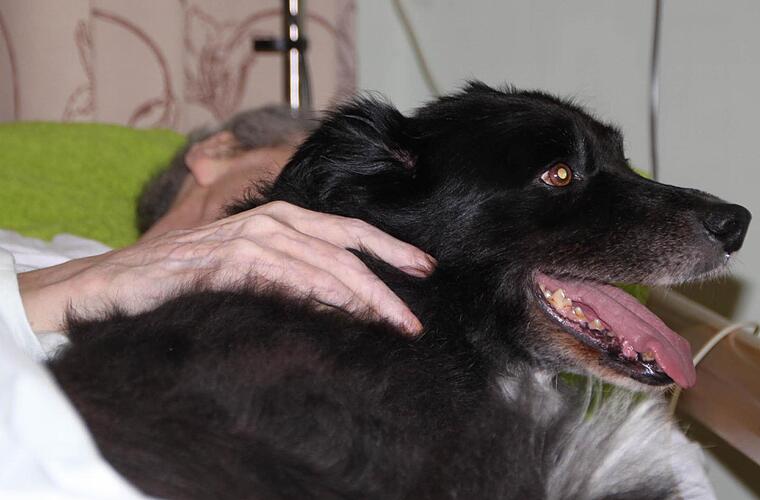 "Demenz nimmt nicht Rücksicht auf das Alter", sagt der stellvertretende Pflegedienstleiter Frank Schaub leise. Der Mann hebt die Hand und krault lange den Nacken des Tieres. "Früher hat er selbst Hunde gehabt", erklärt Ranelli. Aber nur, weil das Personal das weiß, lässt es Cico zu dem Bewohner. Ranelli nennt das "biografische Arbeit".
