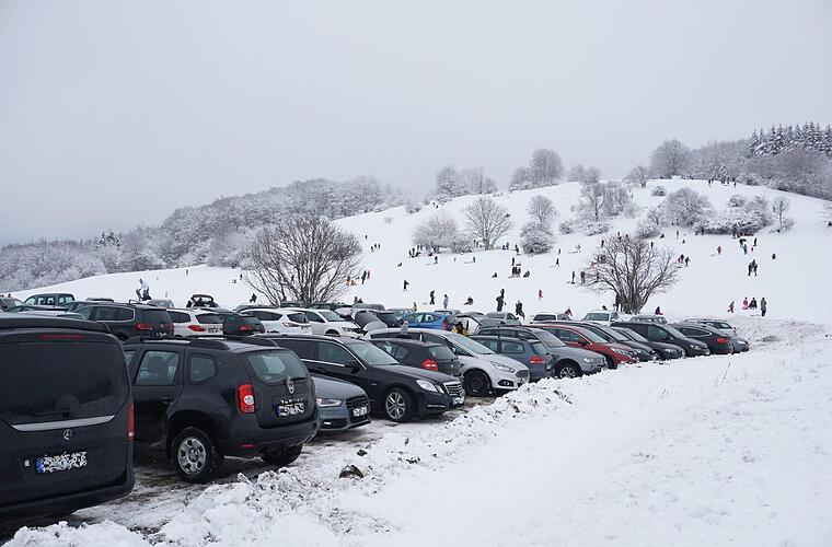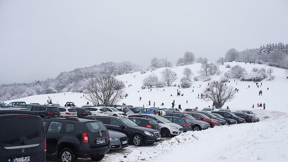 Den Feiertag nutzten Familien mit Kindern, um in der Rhön Schlitten zu fahren. Doch es war lange nicht so voll wie an den Tagen um den Jahreswechsel. Das gilt zumindest für den Kreuzberg. Die Parkplätze waren zwar gut belegt doch von Verkehrschaos keine Spur. Den Nummernschildern zur Folge waren es vorliegend Besucher aus Würzburg, Schweinfurt, Kitzingen und dem Großraum Aschaffenburg, die zum Kreuzberg gekommen waren.