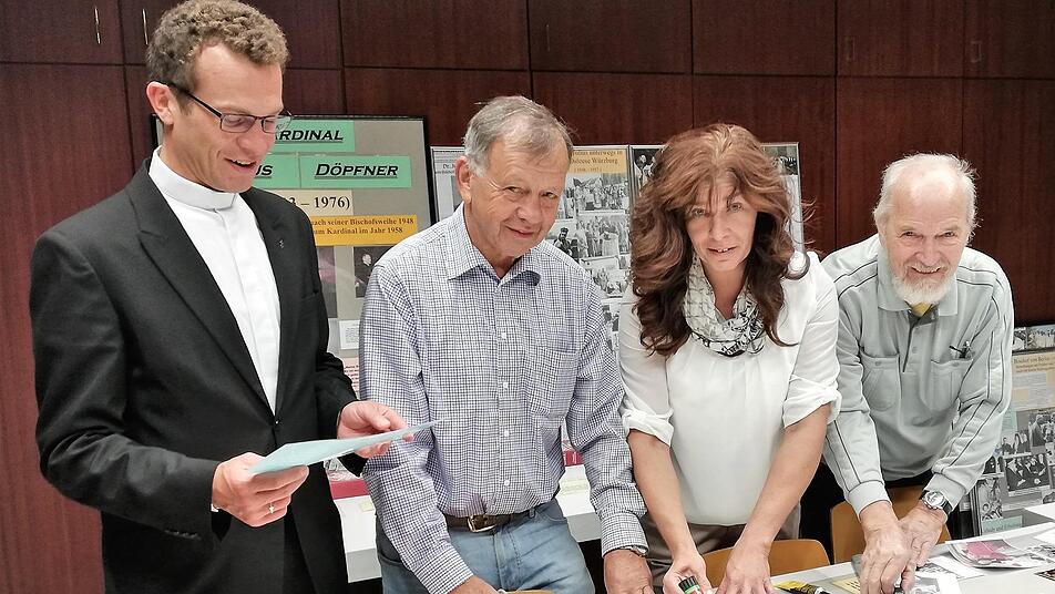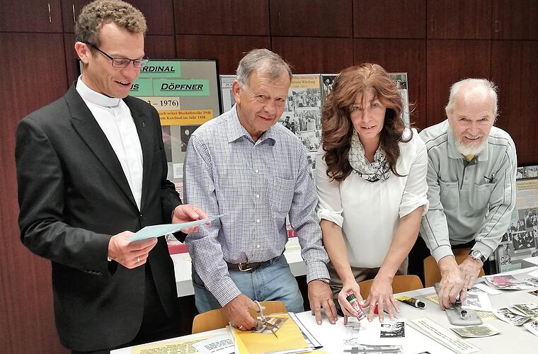 Mit alten Fotos aus eigenem Archiv und Leihgaben von Privatpersonen, mit unzähligen Zeitungsausschnitten, Kopien und Texttafeln ist der große Tisch im Pfarrheim bedeckt, an dem Hans Georg Keßler, Gabi Müller und Werner Martin seit Tagen arbeiten. "Sicher schon 20 Stunden" hat jeder von ihnen eingebracht, um aus dem vielfältigen Material über Kardinal Döpfner das zum Anlass Passende herauszusuchen. "Er war ein Theologe, der wirklich etwas zu sagen wusste", erinnert Keßler, der in seinen Jugendjahren Döpfner noch persönlich kennenlernen durfte, voller Verehrung an den Geistlichen. "Er war 1958 der jüngste Kardinal der katholischen Weltkirche."