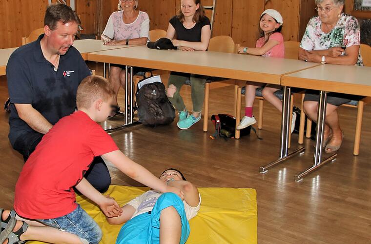 "Was kann denn bei euch so alles passieren?", wollte Thomas Menz wissen. Schnell gingen die Finger hoch. "Ein Wespenstich", "eine Kopfplatzwunde", "ein aufgeschürftes Knie", "ein