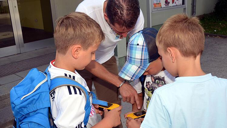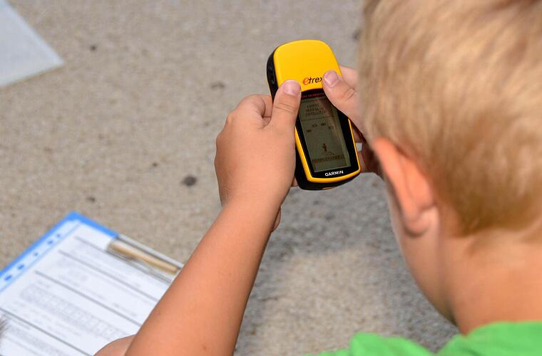 Oliver Kleinhenz machte Kinder mit dieser modernen Variante eines uralten Spieles vertraut: Statt Kreidemarkierungen, umgeknickter Zweige und Richtungspfeilen aus bunten Steinchen wird beim Geocaching modernste Technik eingesetzt, "wie beim Navi im Auto eurer Eltern", erläutert Oliver Kleinhenz, der mit einem knappen Dutzend GPS-Empfängern die Acht- bis Dreizehnjährigen in die Technik einwies.