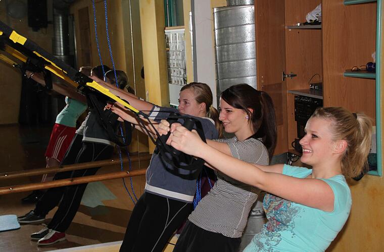 Fitnessraum in der Sporthalle Los ging's mit ein paar Stunden in einem Fitnessstudio der Stadt. Kegeln, Schwimmen und Nordic Walking stehen noch auf dem Programm, bis das Schuljahr zu Ende geht. "Momentan konzentriere ich mich eher auf meinen Abschluss", sagt zum Beispiel Johanna Wildenauer, "aber wenn ich später mal Geld verdiene, könnte ich mir vorstellen, das regelmäßig zu machen."