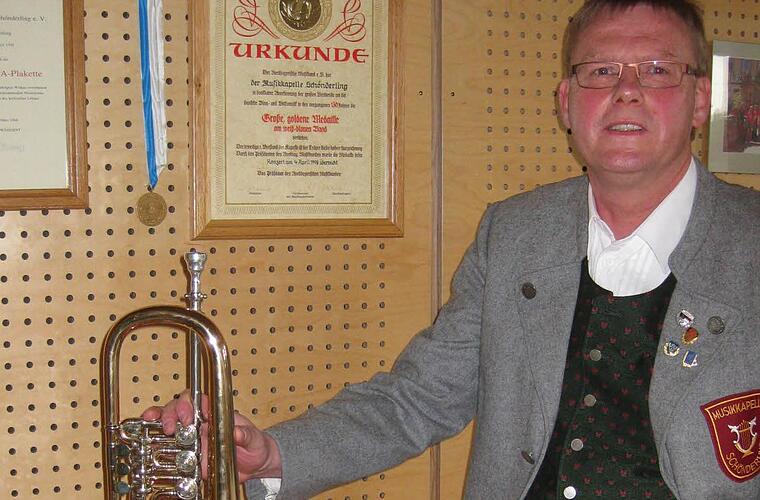 Bereits sein Großvater mütterlicherseits war ein begeisterter Musiker. Harald Schäfer spielt seit 40 Jahren Trompete beziehungsweise Flügelhorn bei der Musikkapelle Schönderling. Als Zwölfjähriger trat er der Kapelle bei, die sich zu diesem Zeitpunkt in einer Umbruchphase befand: "Damals sind die Verantwortlichen im Dorf herumgegangen, haben bei den Eltern nachgefragt, ob die Kinder nicht ein Instrument spielen wollen", erinnert sich Schäfer.