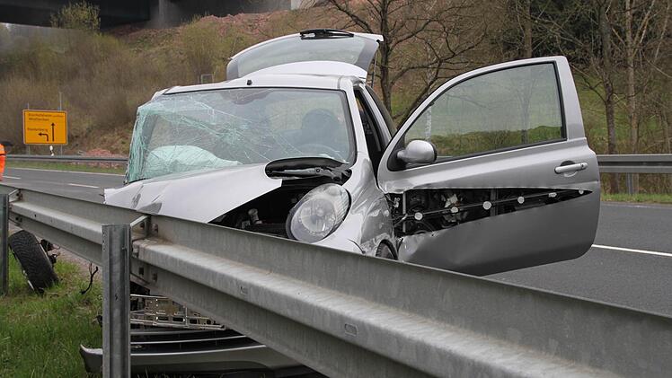 Eine junge Frau und zwei Mitfahrer hatten Glück im Unglück: Bei einem Unfall auf der Kreisstraße 2289 unter der Sinntalbrücke krachte ihr Fahrzeug - ein Nissan - dreimal gegen die Leitplanke, stieß mit drei weiteren Fahrzeugen zusammen und blieb schließlich liegen. Das Auto wurde bei dem Unfall völlig demoliert, aber die Fahrerin und der Beifahrer, 18 und 19 Jahre alt, verletzten sich nur leicht. Eine 18-Jährige, die auf der Rückbank gesessen hatte, erlitt schwere Verletzungen. Sie schwebe aber nicht in Lebensgefahr, teilte der Notarzt der Polizei mit, bevor das Mädchen ins Krankenhaus in Bad Kissingen eingeliefert wurde.