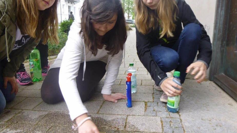 Auch weitere Lebensgeschichten von Kissinger Jugendlichen wie Ernst David Neustädter und Anni Stern bewegten die Schülerinnen und Schüler. Sie hatten das Bedürfnis, auch etwas Praktisches zum Gedenken an die Opfer des Dritten Reiches zu tun. Deshalb kamen sie auf die Idee, die 57 in Bad Kissingen verlegten Stolpersteine zu reinigen. Verteilt auf vier Teams, machten sich die Schülerinnen und Schüler an die Arbeit. Zuvor hatten sie sich mit Schwämmen, Tüchern, Putzmitteln, Wasserflaschen und Kartenmaterial ausgestattet.
