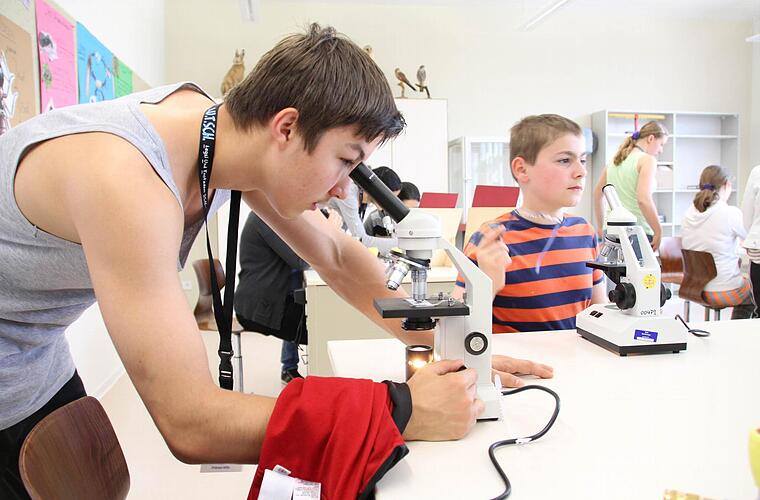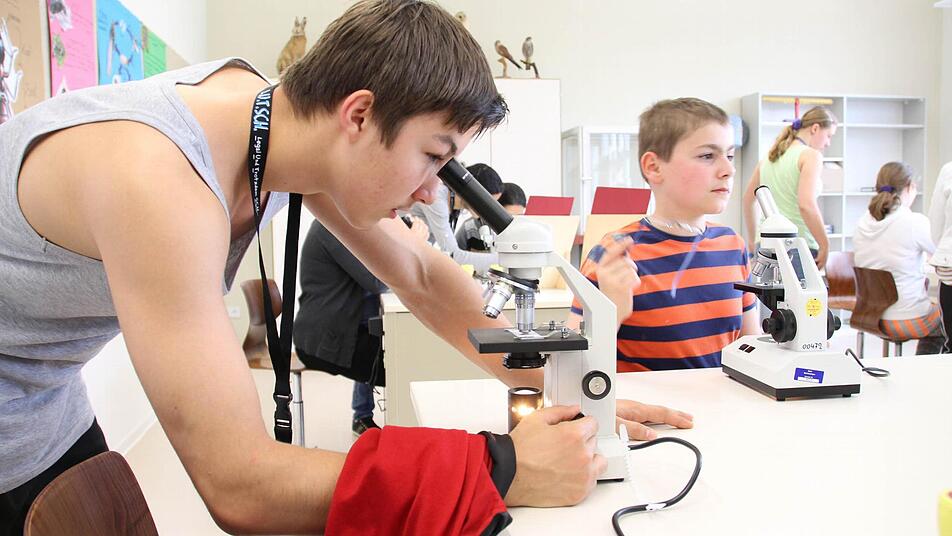 Versuche mit Mikroskopen und Reagenzgläsern sollten Wissenschaft erlebbar machen. Lehrer Christian Friedl und seine Schüler wollen damit "möglichst viele Ahs und Ohs hervorrufen". "Die Schüler können sehen, dass das, was wir in der Schule machen, hilft, die Welt zu erklären."