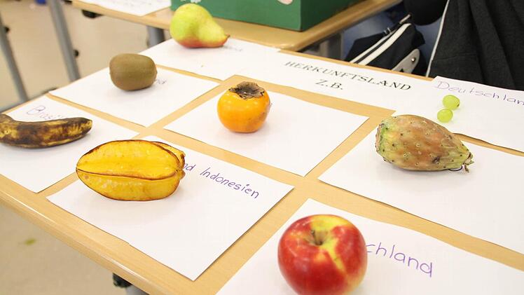 Die siebte Klasse von Lehrerin Katja Herterich prüfte im Ernährungsparcours das Wissen rund um Nahrungsmittel.