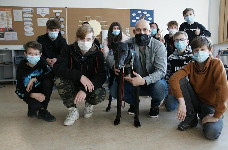 Es folgte ein abschließender zweiter Test und der 36-Jährige startete mit dem Windhund und der 7b in Bad Brückenau einen "Langzeitversuch". Charlie soll die Mittelschüler bis zu ihrem Abschluss an Kocipers neuem Arbeitsort begleiten. Auch danach wird er Teil der Schulfamilienn bleiben. Zunächst kam der Hund zweimal die Woche für einen ganzen Schultag in die Einrichtung; inzwischen bringt ihn sein Herrchen nur noch einmal mit, immer montags.