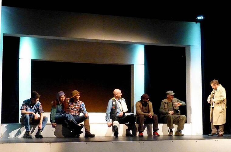 Etwa 40 größere und kleinere Rollen hatten die neun Herren und eine Dame der Truppe zu spielen und das ging nur, weil Regisseurin Eva Hosemann sowohl das Ineinander und Nebeneinander der Szenen als
