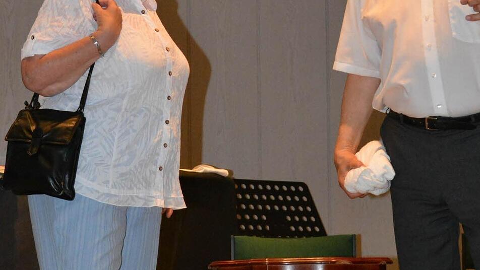 "Aus dem Leben gegriffen" waren die Sketche, die die Nürnberger Oldiekiste bei einem Gastauftritt in Bad Bocklet zum besten gab. Ob nun die ewig nörgelnde Ehefrau, der ach-so-gebildete Ehemann oder die berühmte Krankenschwester, die am "Wir-Syndrom" leidet - die verschiedensten Charaktere, denen man im Leben so begegnet wurden treffend aufs Korn genommen, was die Zuschauer sehr amüsierte. Gertrud Kutzberger und Dieter Fraunholz gingen ganz in ihren Rollen auf und man merkte, dass beide mit sehr viel Spaß bei der Sache waren. Dabei verfügen beide über langjährige Schauspielerfahrungen: Kutzberger spielt seit fast 25 Jahren und besetzt im Staatstheater in Nürnberg während der Kammerspiele größere Rollen. Ungleich länger auf den Brettern, die die Welt bedeuten ist Dieter Fraunholz: "Ich spiele seit 40 Jahren Theater. In meinem Berufsleben war ich nämlich Handelsvertreter", meinte der sympathische Schauspieler als er sich und seine Partnerin vorstellte. Natürlich hatte er auch da die Lacher auf seiner Seite. Fraunholz ist seit 2004 Mitglied im Ensemble, seit 2007 leitet er es.