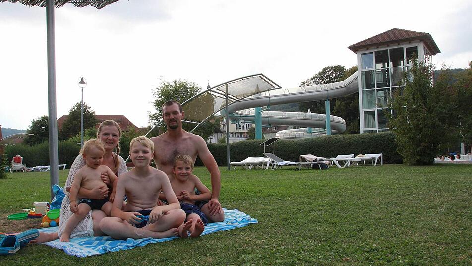 Für den vierten Teil unserer Sommer-Serie hatten die Schwimmbad-Tester den kürzesten Anreiseweg. Es ging ins benachbarte Bad Brückenau in die Sinnflut Therme. Dort wollen Steffi und Florian aus Singenrain zusammen mit ihren drei Jungs Bennett, Lauritz und Yannick das Badevergnügen einmal genauer unter die Lupe nehmen. Nach dem Test bewerten sie fünf Kategorien mit jeweils bis zu fünf Punkten