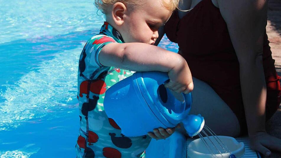 "Hier gibt es wirklich nur Wasser", fasst Steffi Karges das Urteil zusammen. Das Kombi-Becken für Schwimmer und Nichtschwimmer eigne sich zwar gut zum Schwimmen lernen, meint sie. Die Wassertiefe von 1,10 Meter bis 1,80 Meter - genau richtig. Aber Lauritz ist enttäuscht: keine Springböcke, keine Spielsachen, keine Rutsche. "Eine Rutsche gehört einfach dazu", sagt er. Und er wüsste auch schon, wo er sie aufstellen würde.
