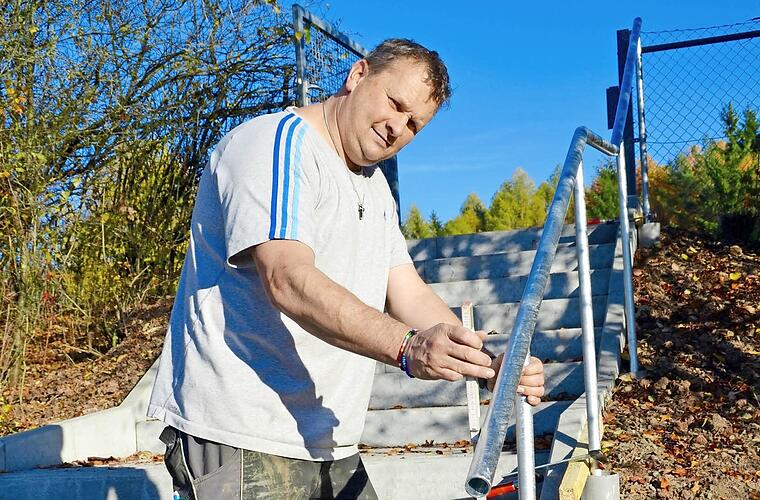 Schließlich möchte die DJK den Hartplatz im Winter auch anderen Sportvereinen zum Fußballspielen anbieten, und da müssen die Zugänge ordentlich sein. "Den Treppenbau haben Konrad Weißensel und Thomas Herold mit ihren Leuten von der Dart-Abteilung in Eigenregie erledigt", erklärt Loibersbeck. Er würde nun nur noch die Restarbeiten am Geländer erledigen.